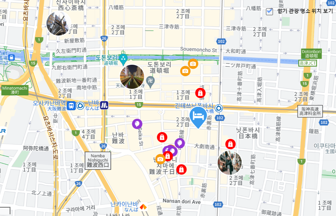 또 오사카 여행은 뚜벅이로, 또는 대중교통을 이용할 거라 무조건 위치가 환상인 곳을 잡기로 마음 먹었어요.